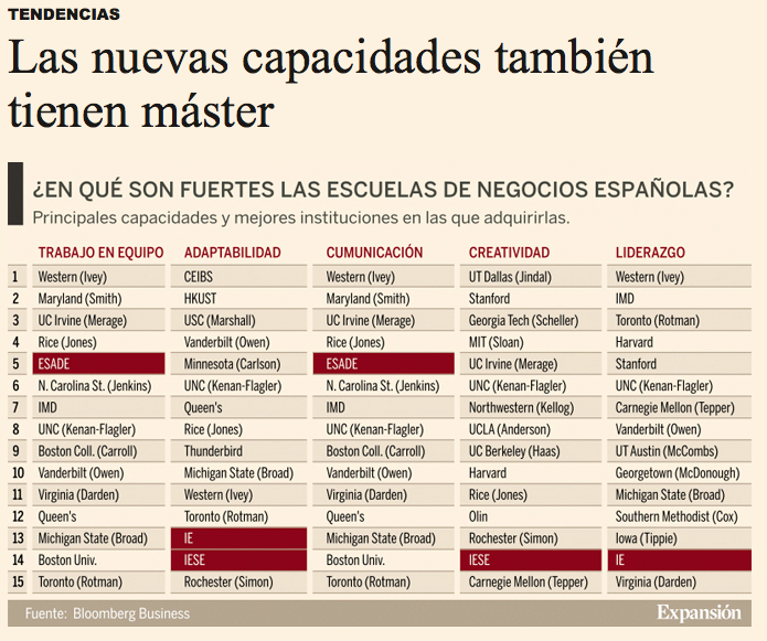 Las escuelas de negocio y los cursos de formación a trabajadores son las alternativas que quedan a los trabajadores ocupados para formarse y adquirir estas habilidades. Este tipo de competencias no suelen formar parte de los curriculum académicos ni de la totalidad de escuelas de negocio. En la imagen adjunta vemos cómo la formación en «Creatividad para la resolución de problemas» es realmente escasa entre las Escuelas de Negocio de España, centrándose esta competencia en escuelas de negocio norteamericanas.